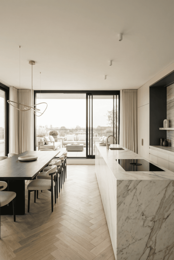 Creamos interiores pensados para perdurar, combinando diseño contemporáneo con materiales nobles.
